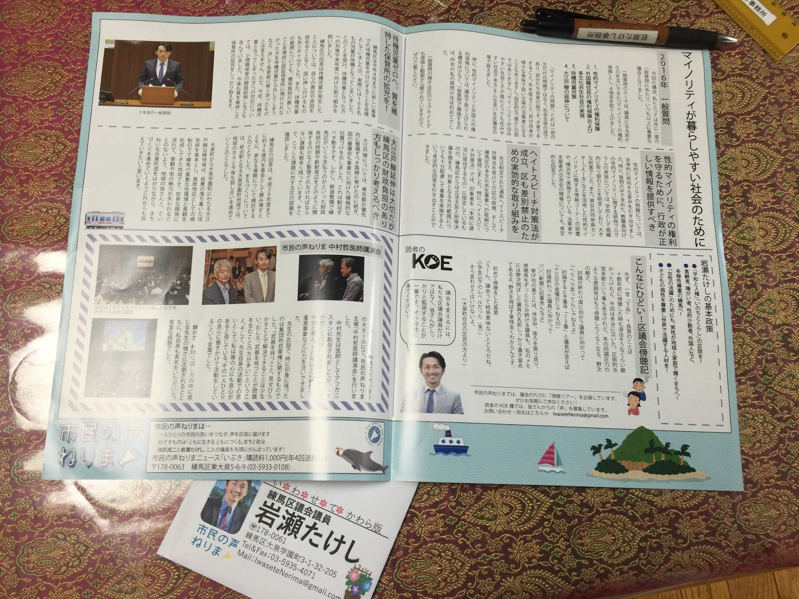 都知事選も終わり、やっと一息…ということもなく、この間、区政報告(かわら版)の作成に大忙し。このかわら版、文章を作るだけではなく、デザイン、配置、印刷の発注、折り込み、手配りと、多岐にわたります。今回は、私の一般質問の内容や前回の議会の主な争点などをご報告しています。