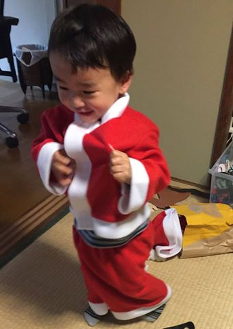 その後、クリスマスのためにAmazonで1000円で買ったサンタさんの衣装を着せようとするも、全力で断られる。仕方ないから、私が90㎝の衣装を無理やり被ってポーズをとると「ジングルベル」を全力で歌ってくれました。いつまでもリフレインする息子の「じんぐるべーる、じんぐるべーる、すじゅがなる、へい!(掛け声つき。。。)」という歌声に必死で踊り続けました…。