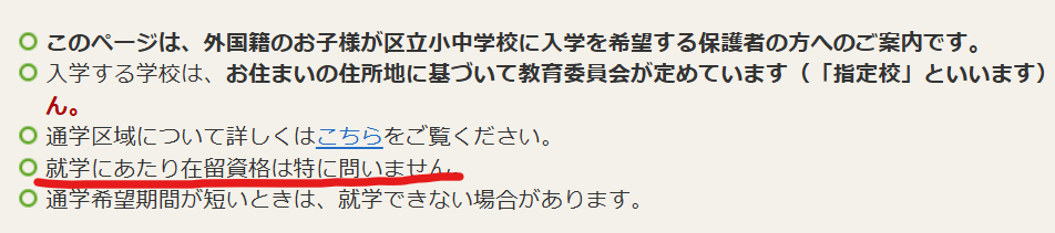 練馬区の対応 「就学にあたり在留資格は問わない」とウェブサイトへ明記!