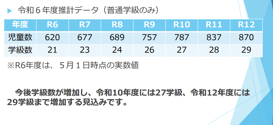 2024年12月に実施された保護者説明会において、練馬区は地域の人口が急増しており、現在の生徒数620名(23学級)が2030年までに870名(29学級)に達すると試算。普通教室だけでなく、少人数教室、ねりっこクラブの不足も顕著となることから、練馬区は急遽増築をすることを決定しました。