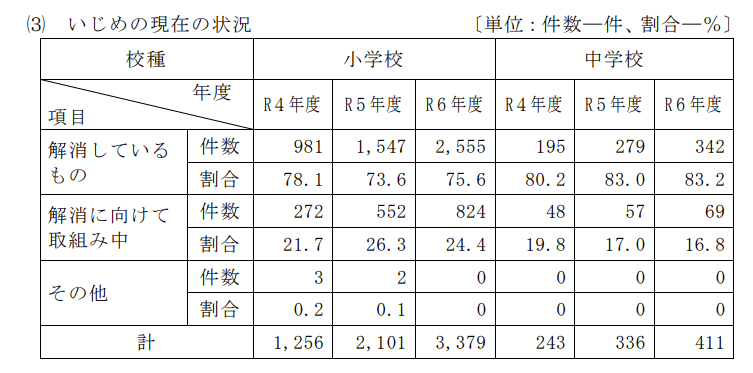 さらに、金品をたかられる、物を隠される・壊されるといった行為や、SNSを通じた誹謗中傷など、周囲の大人からは見えにくい事案も増えています。2024年度の「いじめ重大事態」も一昨年度と同様2件発生したと報告がありました。