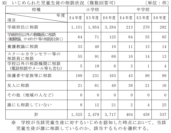 その一方で「誰にも相談していない」と答える子どもの割合が小学校・中学校ともに増加しており、特に中学校では4件から25件へと急増していることも大きな問題です。