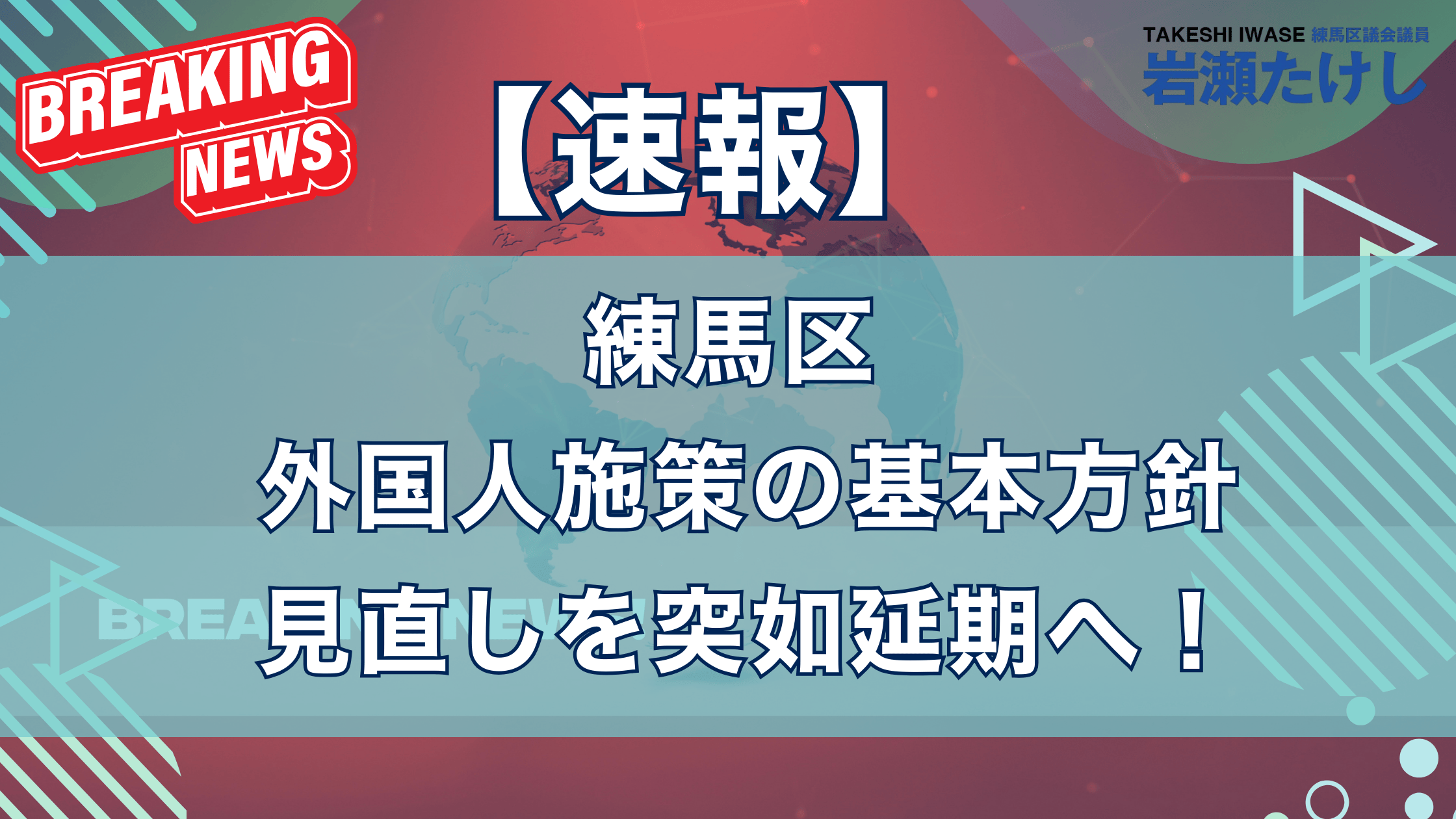 12月1日の令和7年練馬区議会第四回定例会の一般質問において、練馬区は13年振りに改訂を予定していた外国人施策の基本方針について、国の方針転換を受けて、年度内の策定を来年度以降に延期することを明らかにしました。練馬区の多文化共生政策を大きく後退させることに繋がりかねず、非常に残念です。