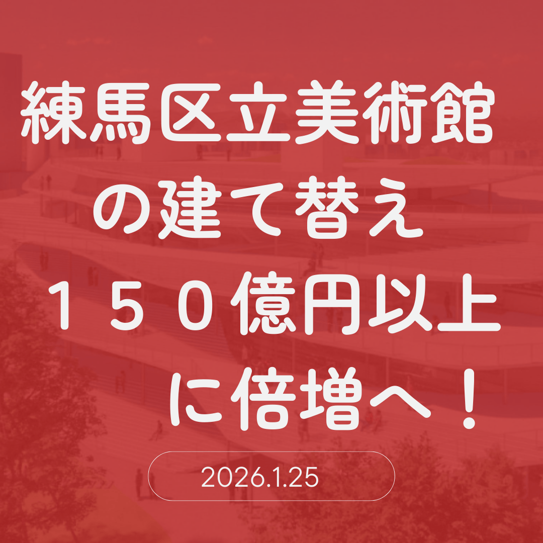 練馬区立美術館の建て替え(貫井図書館を含む一体的な再整備)をめぐり、整備費が当初予定の76億円から倍以上となる150億円超に上振れする見込みであることが、2026年1月22日の区長記者会見で明らかになりました。にもかかわらず区は計画を継続する方針を崩さず、2026年度も「美術館リニューアルの機運醸成・PR」の名目で2,270万円を計上しています。