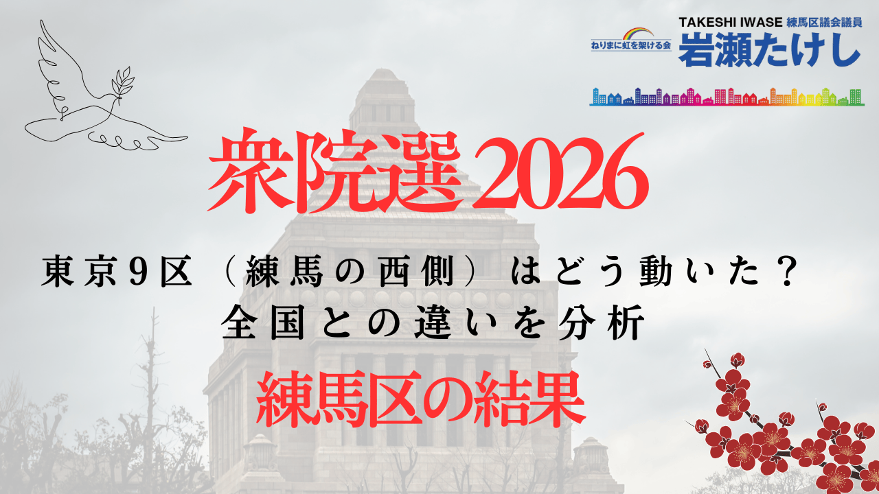 それでも、民主主義は一度の敗北で終わるものではありません。悔しい。悔しいけれど、分断や排除が広がる今だからこそ、人権と多様性を大切にする政治を、なんとしても呼び戻したい。そう強く思います。まずは、練馬区・東京9区(練馬西)の結果をできるだけわかりやすく整理しました。その中で少し希望も。ぜひご覧ください。