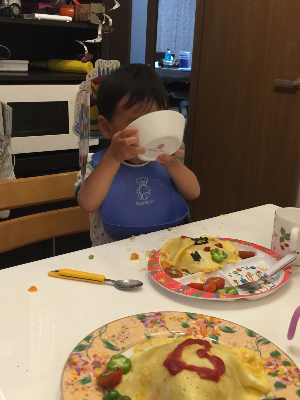 30代最後の誕生日。朝目覚めたら妻と息子がハッピーバースデーを歌いながら私の大好物のオムライスでサプライズ!息子はオムレツを指でぐちゃぐちゃにした上で、「どうじょ!」と言いながら私のおニューのポロシャツに抱きついてきた(*´ω`*)
