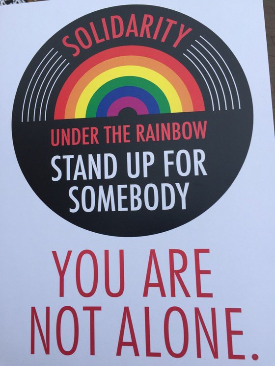会場に到着すると、開始前からたくさんの方が差別反対を訴えるおもいおもいのプラカードを手に。印象として、若い方や子供連れの方がとても多い。プラカードも英語や韓国語、中国語やスペイン語などバラエティに富んでいることに驚く。そして、パレードが開始すると沿道の方々、特に外国人の方々からたくさんの声援があがり、どんどんパレードに参加する方の数が増えていく。