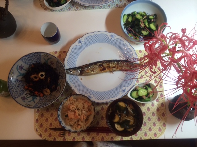 出産後の母親はしっかり体を休めないといけないため、妻のために三食つくる。メニューに悩むが、お昼は妻の好きなお好み焼き。妻と剛朗が昼寝している間、乳児の育児書を読破。夕飯は栄養バランスをとりつつ旬のものをそろえる。鮭の炊き込みご飯、ナスとまいたけのお味噌汁、さんまの塩焼き、ひじきの煮つけ、季節の酢の物。さんまも焼き上がって、完成!よし、とワクワクして妻の反応を待つ。いよいよ食べようとしたその瞬間、子ども部屋から剛朗ちゃんのミルクを求める絶叫が…妻、Uターン。そう、私達の生活は、もうわれらがプリンスが中心。さんまが焼けた瞬間だろうが、お構いなし。1時間後に覚めてしまったお夕飯を食べながらも、幸せな気持ちになる二人。