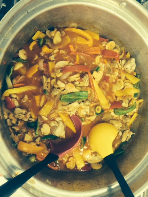 私がシェフとなる以上、メニューも珍しいものを期待されます。でもエクアドルで常食したネズミの丸焼きを出すわけにはいかない。ということで、今日の主食は妻の得意料理でもあるスペイン料理のチリンドロン!(トマトをベースにチキン、パプリカ、オリーブ、玉ねぎ、マッシュルームなどを煮込んだもので、スペイン語でカルタ遊び。カラフルな食材がカルタのように見えるからとのこと)。