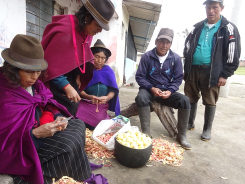 先住民の方々の栄養改善のために現地で収穫される農作物を用いた料理方法を指導します。というのも、こちらではたくさんの種類の農産物が栽培できるにも関わらず、先住民の方は料理方法をほとんど知らないことから、大半を市場で販売してしまい、自分たちで食べる農産物はごくわずかの種類に限られている為です。そんな中、今日はジャガイモとソラマメの煮物、そして、村で取れる大麦を使ったパン作りの指導を行いました。