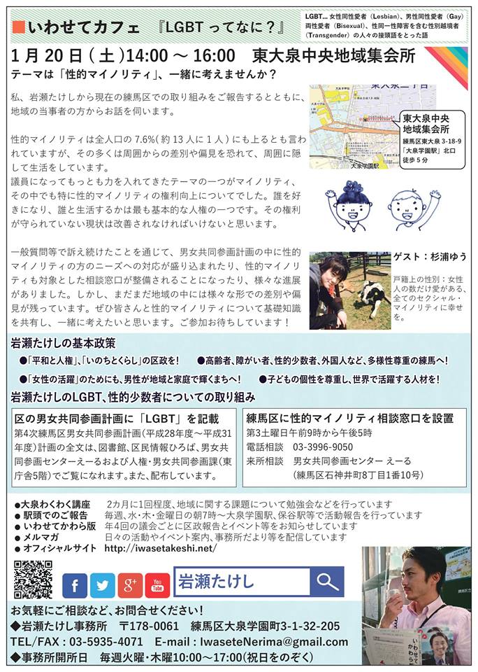1月20日(土)いわせてカフェのご案内 「LGBTって何?」