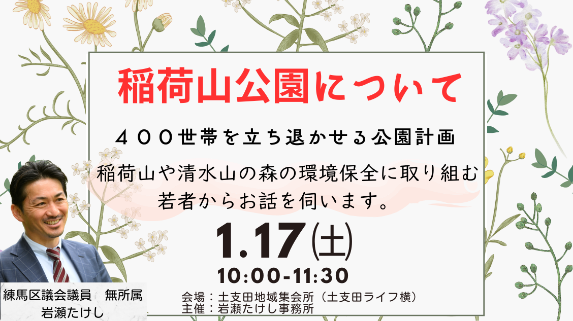 今回の勉強会では、清水山の森や稲荷山憩いの森の保護活動に取り組んできた20代の若者のお話を中心に、地域の自然の価値や、稲荷山公園整備計画の課題について、皆さんと一緒に考え、意見交換できればと思います。
